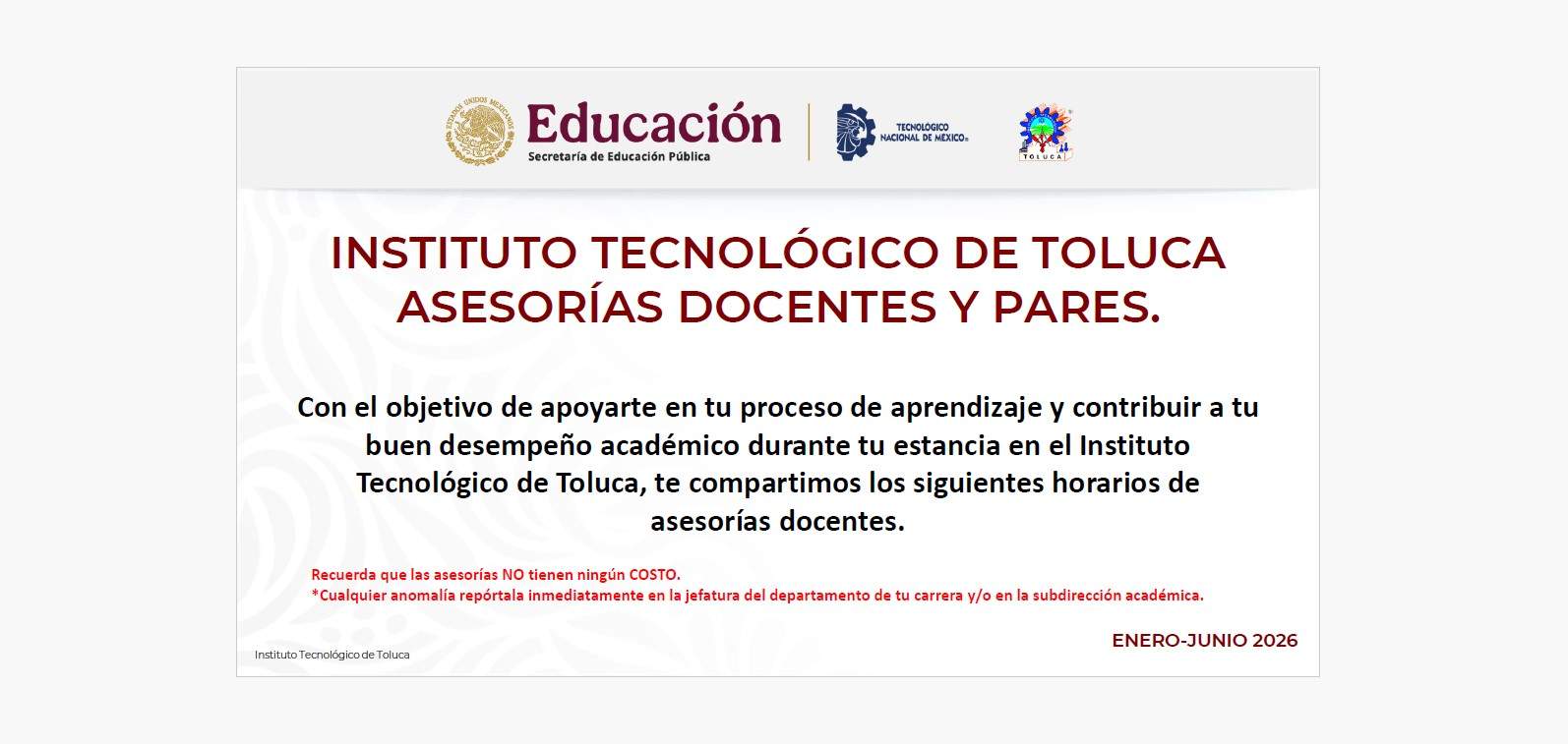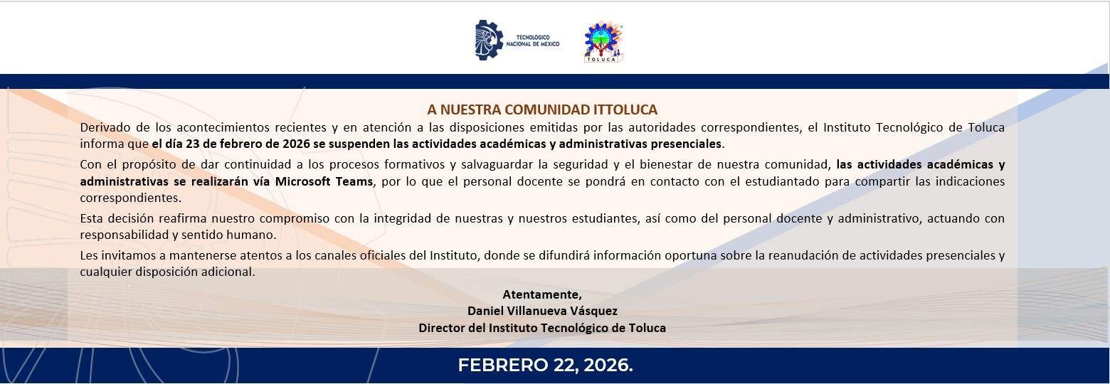 Direcciones: Instituto Tecnológico de Toluca Av. Tecnológico S/N. Colonia Agrícola Bellavista, Metepec, Edo. De México, México C.P. 52149
