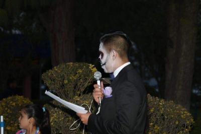 PRIMER LUGAR “EL ABRAZO DE LA FLACA” RESPONSABLE BENJAMIN ISAC IZQUIERDO PERALTA DEL TALLER DE GUITARRA. SEGUNDO LUGAR “OFRENDA OAXAQUEÑA” RESPONSABLE DEBORAH BIBIANA BAUTISTA GONZÁLEZ DEL GRUPO DE DANZA FOLKLÓRICA. TERCER LUGAR “EL ARTE DE LA MUERTE” RESPONSABLE MIGUEL ANGEL BARBOZA DEL TALLER DE MODELADO EN PAPEL.CONCURSO DE CALAVERAS LITERARIAS
