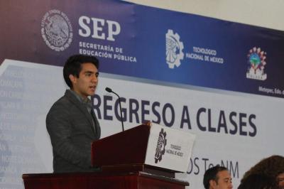 Durante la ceremonia de bienvenida a los estudiantes de nuevo ingreso del ITToluca, reunidos en el Gimnasio de la institución, se transmitió un video del primer mensaje del nuevo Director General del TecNM, Enrique Fernández Fassnacht, dirigido a toda la comunidad de los institutos tecnológicos pertenecientes a esta institución, en el que los conminó a acompañarle con su mejor esfuerzo a cumplir con la encomienda del gobierno federal, para poder hacer de México “un país fuerte, justo y próspero”.