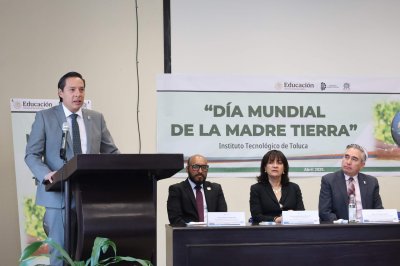 Metepec, Méx. a 29 de abril 2025.- La conmemoración del Día Mundial de la Madre Tierra en el Instituto Tecnológico de Toluca (ITToluca) se llevó a cabo en la sala audiovisual del Edificio del Laboratorio de Investigación en Ingeniería Ambiental (LIIA) donde se dio cita la comunidad tecnológica. El director de la institución, Daniel Villanueva Vásquez, promovió la firma de la declaratoria de compromiso de ser un espacio 100% libre de plástico de un solo uso. En representación de Ramón Jiménez López, Director General del Tecnológico Nacional de México (TecNM), se contó con la participación de Manuel Chávez Sáenz, Director de Institutos Tecnológicos Descentralizados y Coordinador Nacional de la Iniciativa TecNM 100% Libre de plástico de un solo uso. Además, participó con una conferencia Gerardo García González, Director General de Protección y Restauración del Medio Ambiente y Desarrollo Sostenible del Estado de México.