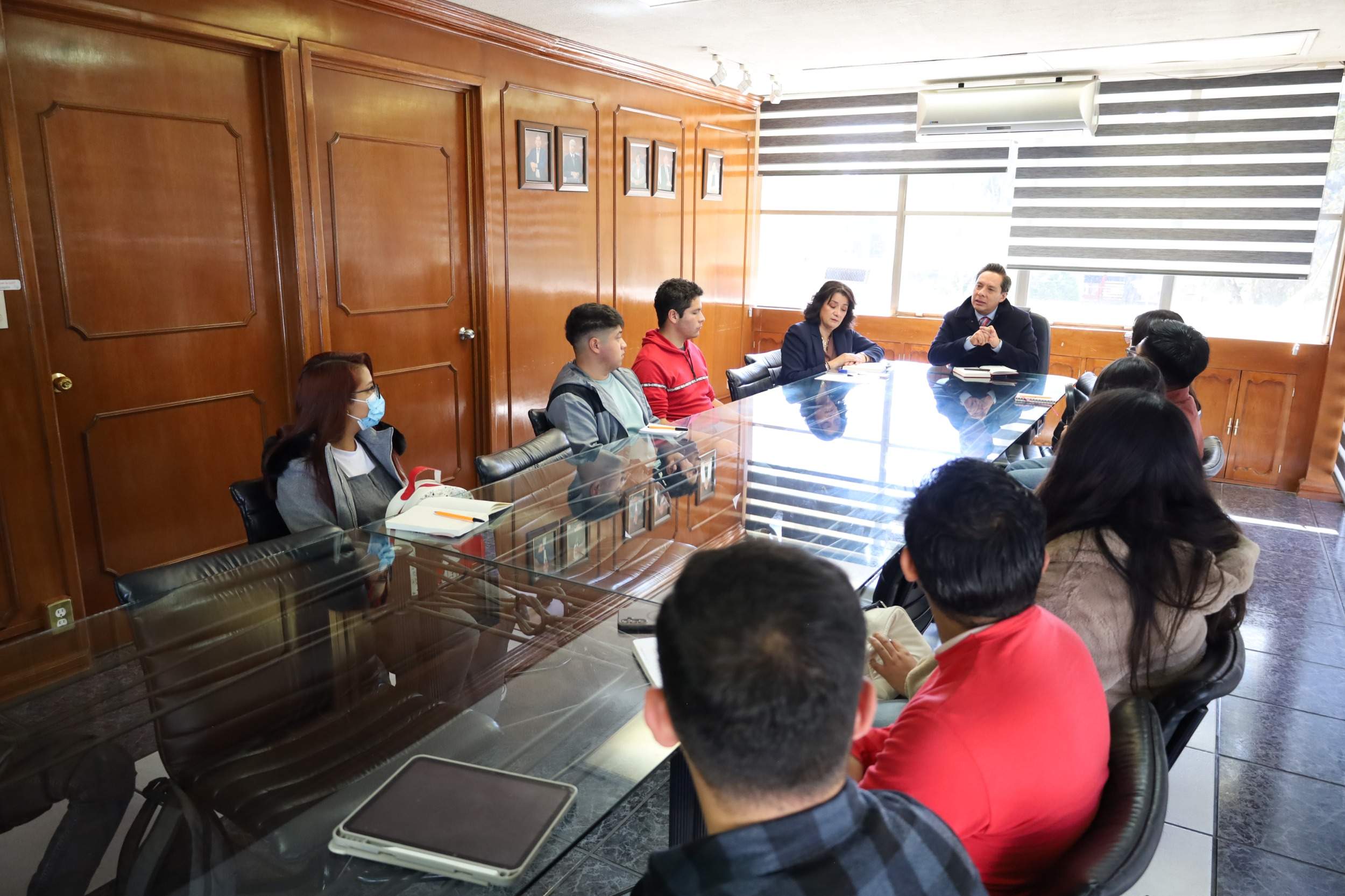 Metepec, Méx., a 14 de enero de 2026.- En un encuentro caracterizado por un ambiente de apertura y respeto, el director del Instituto Tecnológico de Toluca, Daniel Villanueva Vásquez, y la subdirectora académica, Ana Luisa Zenteno Bonola, sostuvieron una reunión en la sala de juntas de la Dirección con las presidentas y los presidentes de los capítulos estudiantiles y ramas de las distintas ingenierías de la institución. El objetivo del encuentro fue atender las peticiones e inquietudes de la comunidad estudiantil y fortalecer los mecanismos de comunicación institucional, promoviendo una relación cercana y colaborativa en beneficio del estudiantado.